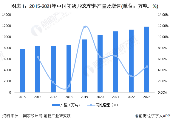 2015-2023年,我國初級形態(tài)塑料產(chǎn)量逐漸增加。2023年全國初級形態(tài)塑料產(chǎn)量為11901.84萬噸,同比增長4.71%。